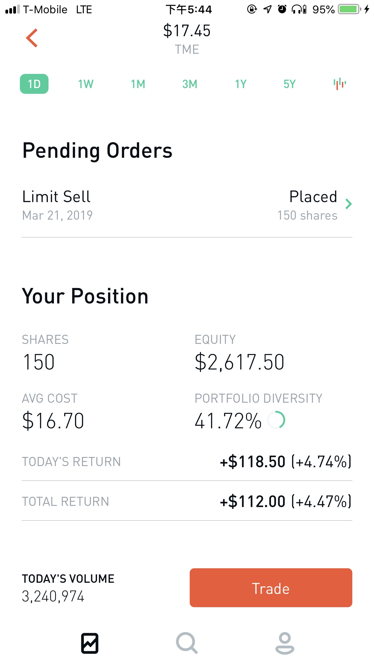 $腾讯音乐(TME)$ 17.52 抛了150 剩下的看看明天能不能上到17.7