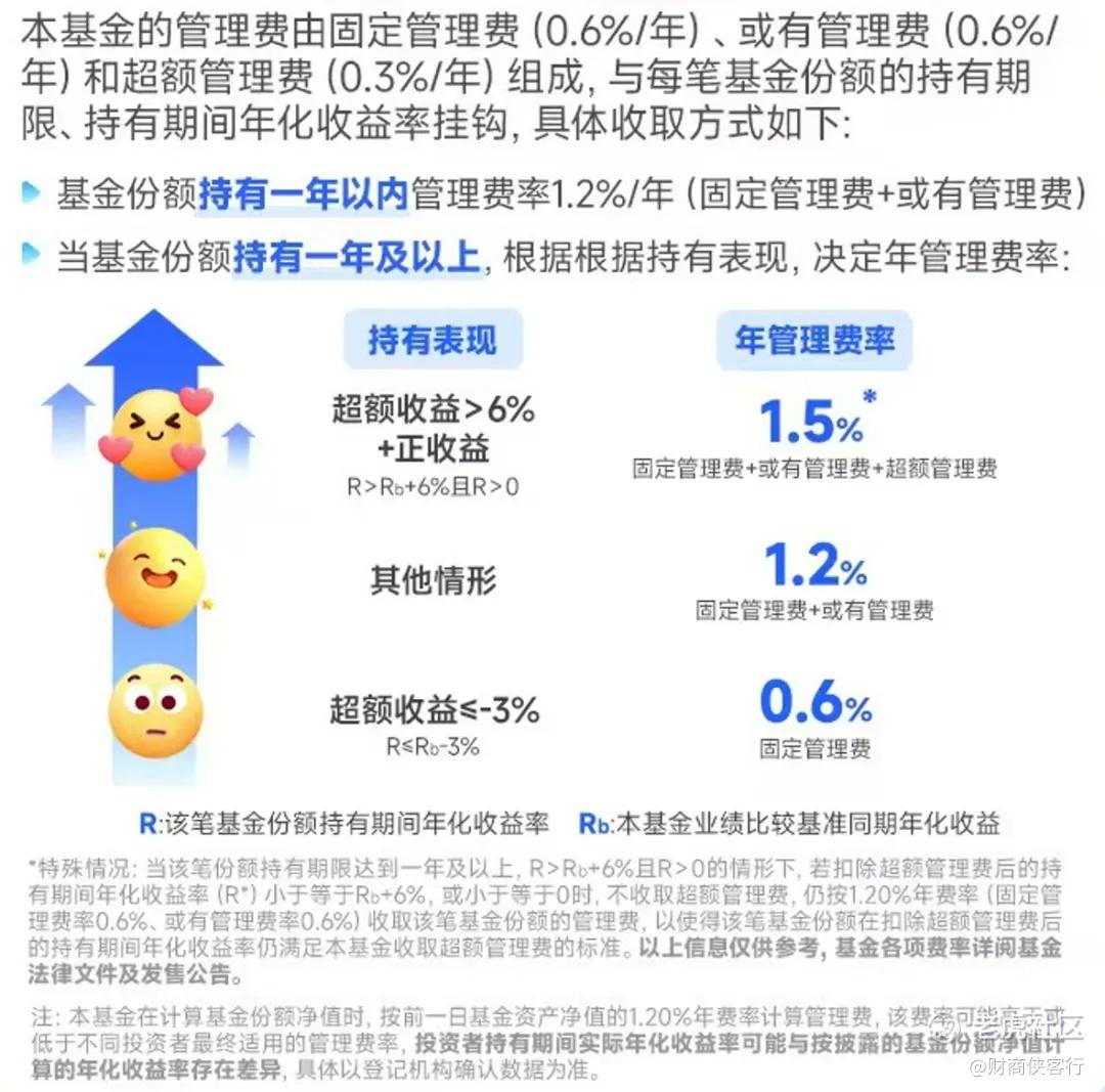 相当于基民给基金一个“激励机制”,如果基金经理帮我们赚到6%以上的年超额收益,就能拿到高于市场水平的管理费(1.5%)。