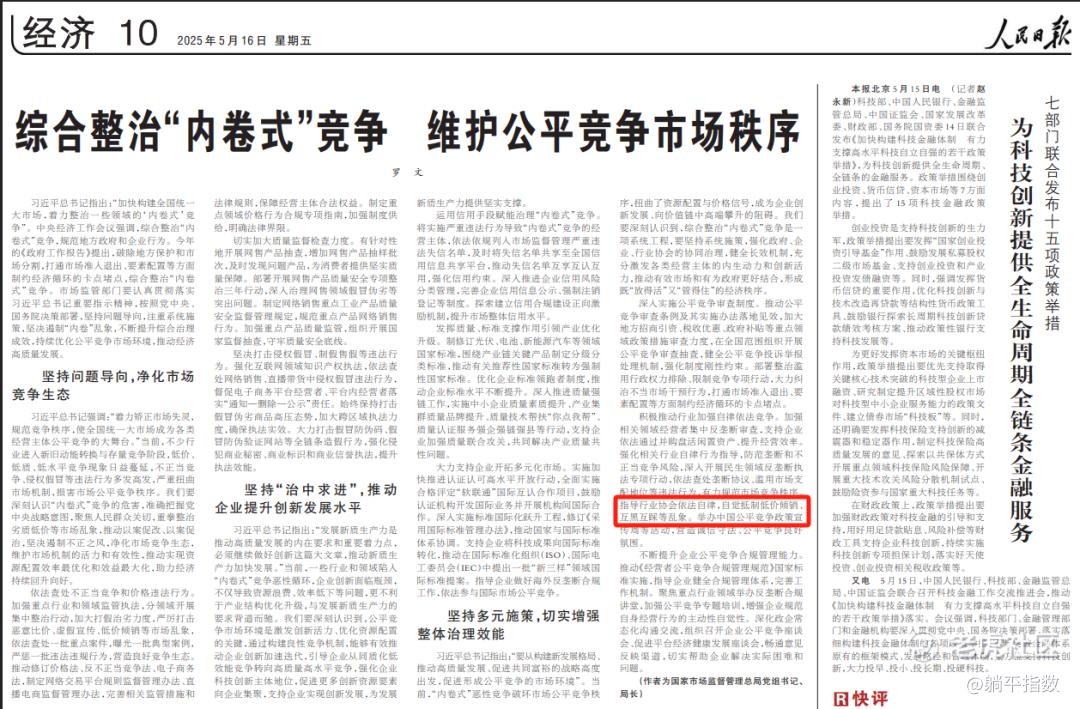 就在市场纷纷猜测此次会议的主旨要求时,5月16日国家市场监督管理总局党组书记、局长罗文在人民日报发表题为《综合整治“内卷式”竞争 维护公平竞争市场秩序》的文章,其中重点内容包括: