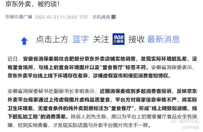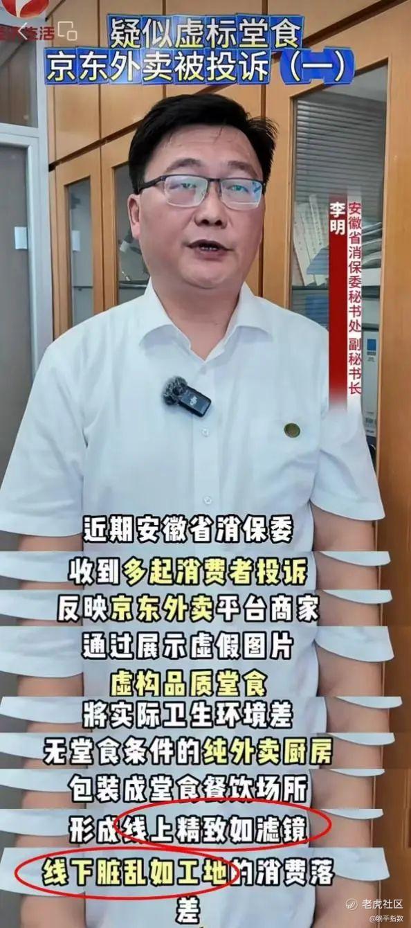 安徽消保委则直接点名,称接到消费者投诉,京东外卖对商家信息审核不严,将实际卫生环境差、无堂食条件的纯外卖厨房标注为“堂食餐厅”,形成“线上精致如滤镜、线下脏乱如工地”的消费落差。