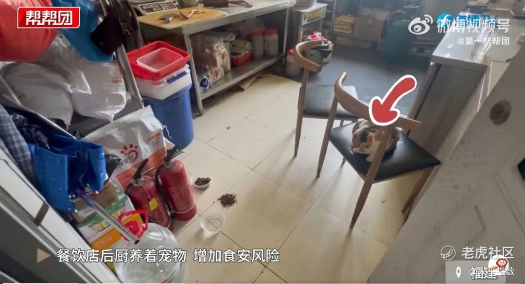 (2025年5月8日,据福建电视台第一帮帮团报道,记者实地探访发现,某外卖商户后厨养着宠物,增加食品安全风险)