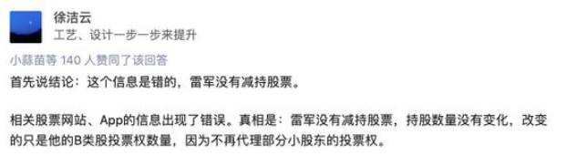 雷军持股数发生了变动,显示少了3.78亿股,其实并不是雷布斯减持!改变的只是他的B类股投票权数量,就是那3.78亿股原本是用来代理小股东们在董事会投票用的!!!!因为现在不再代理了(我也不知道为啥),所以被误导显示少了3.78亿股。