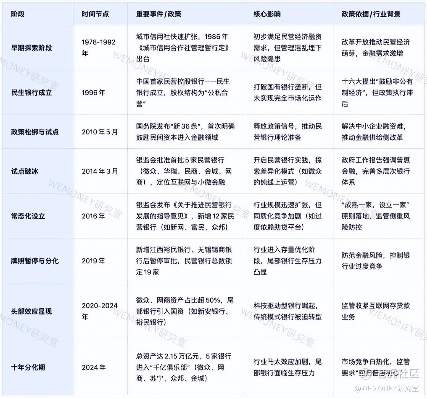 民营银行的早期探索可以追溯到上个世纪。1996年民生银行成立,虽未被官方归类为民营银行,但开创民资控股先河;2003年后渤海银行、浙商银行等混合所有制银行陆续出现。