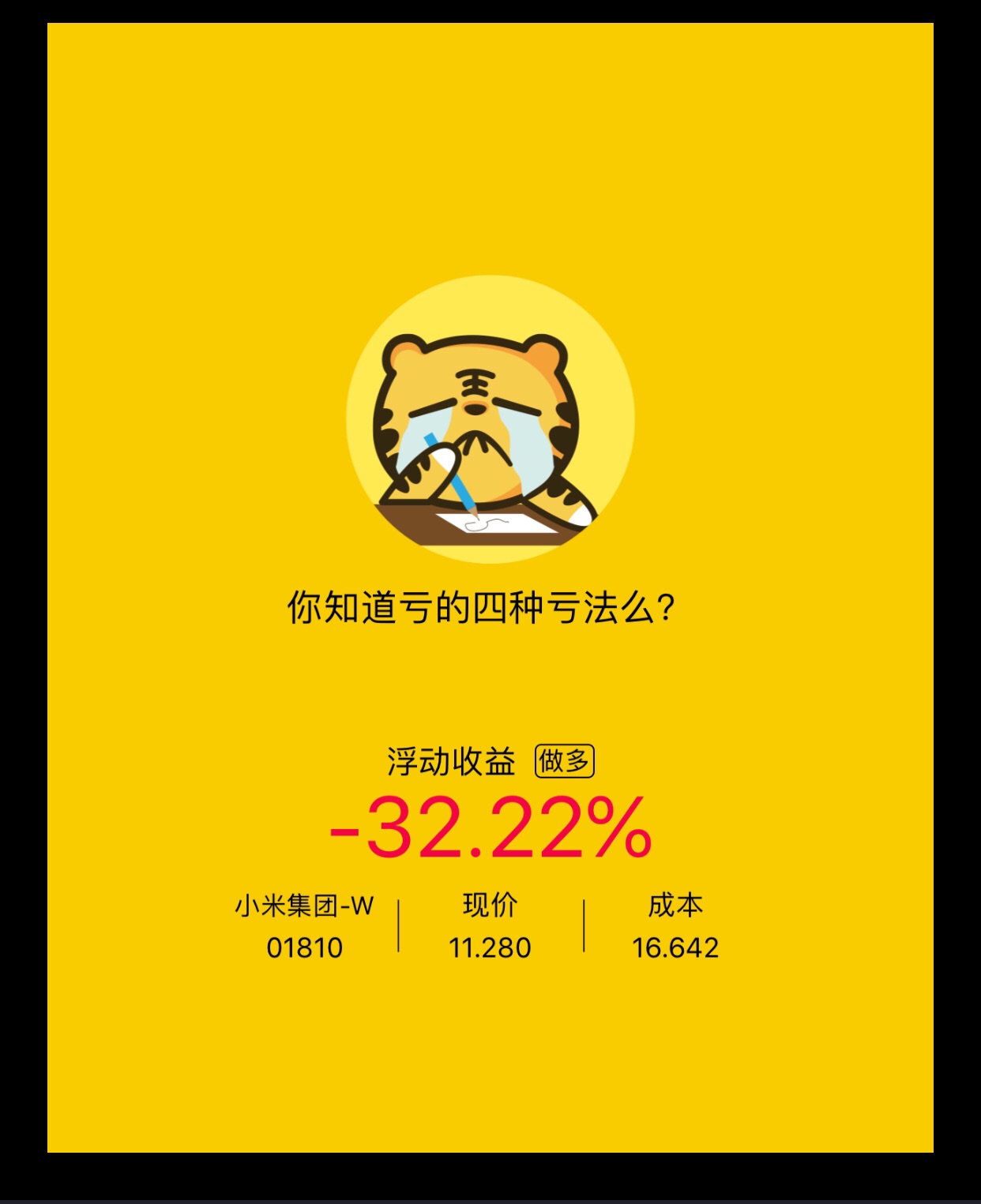 $小米集团-W(01810)$ 谁有我惨,已经亏了1万港币