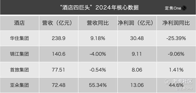 从2025年一季度的营收体量来看,华住以54亿元的营收、8.9亿元的净利润,居于首位,但营收增速降到2.2%(2024年是9.2%),已显疲态。