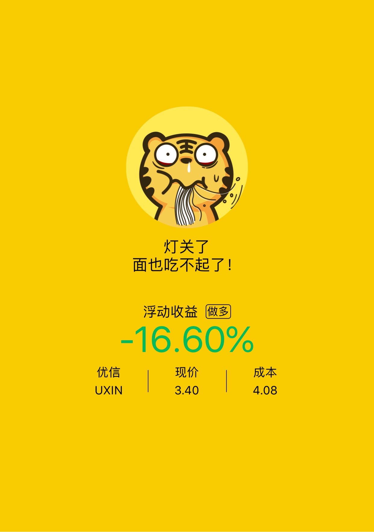 $优信(UXIN)$ 3.41清仓了。拿在手里还不如去买点其他的。浪费时间。呸。