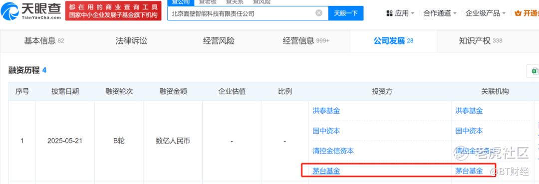 面对业绩增速放缓,市场消费疲软的境况,茅台的跨界投资引发投资者的注意。投资面壁智能是茅台跨界投资的尝试。天眼查显示,面壁智能在5月21日获得数亿人民币的融资,除了洪泰基金、国中资本等知名机构外还有茅台基金。
