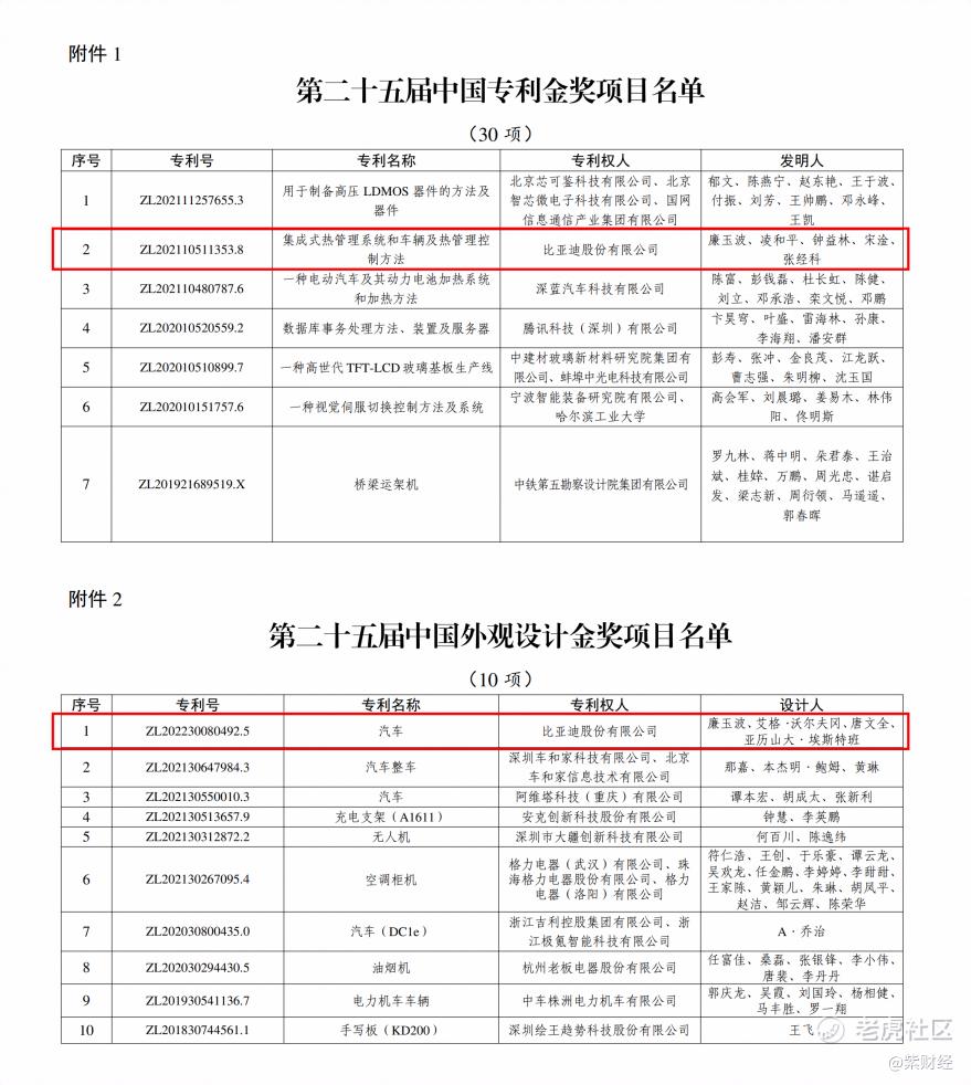 近日,国家知识产权局发布了《关于第二十五届中国专利奖授奖的决定》,“国内新能源汽车一哥”比亚迪凭借领先的技术创新和卓越的设计能力成功摘得两项重量级专利大奖,其中,集成式热管理系统专利、腾势D9外观专利分别荣获第二十五届中国专利金奖、中国外观设计金奖。