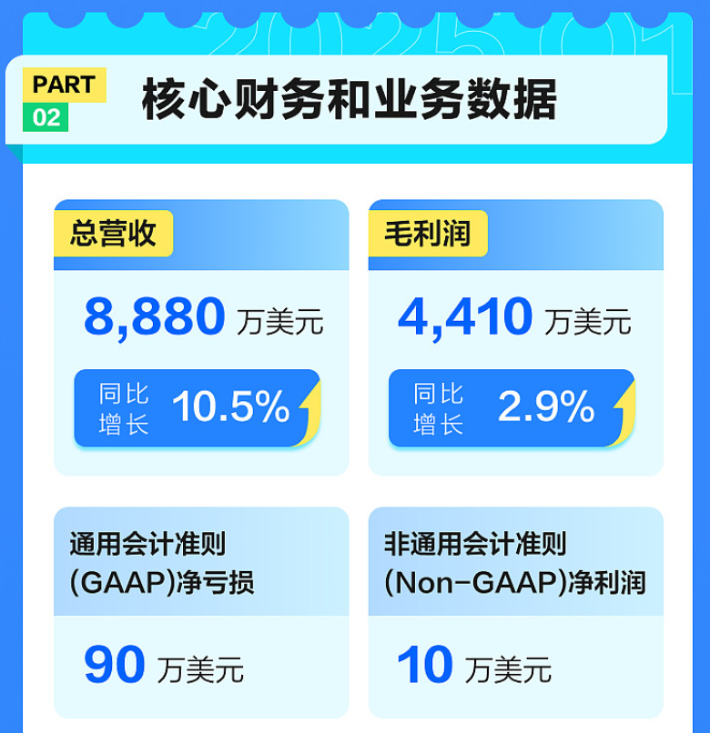 就拿迅雷 2025 年第一季度的业绩来看,总营收和毛利润都同比小涨了一波。总营收达到了 8880 万美元,毛利润 4410 万美元。