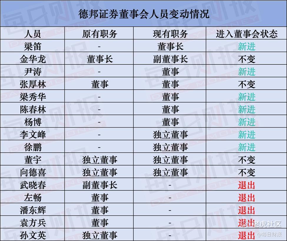临时股东会结束后,德邦证券还召开了第五届董事会、监事会第一次会议,一致选举梁雷为第五届董事会董事长、周苹为第五届监事会主席。