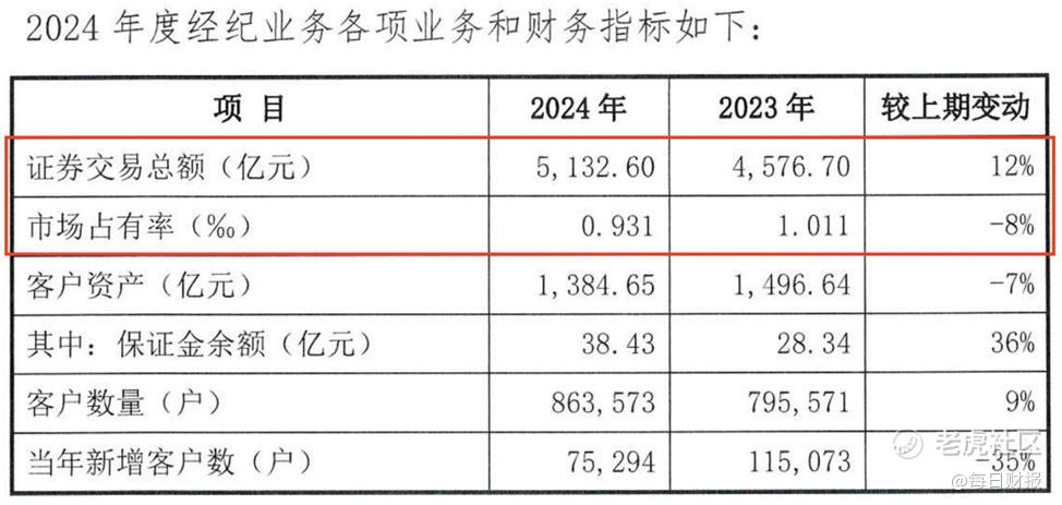 在财富管理赛道,尽管经纪业务交易规模实现5132.60亿元(同比增幅12%),但市场占有率却逆势收缩至0.931%,较上年缩减8个基点。这种“量增份减”的矛盾现象,折射出行业集中度提升背景下中小券商的生存困境。手续费及佣金净收入方面,去年德邦证券经纪业务虽有”924“行情加持,却只录得3亿元创收,同比下滑28.12%,降幅居各业务之首。