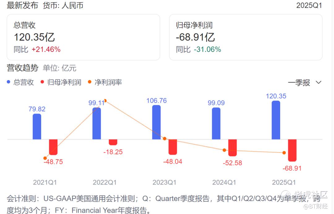 近日,蔚来发布2025年一季报。财报显示,一季度蔚来营收120.3亿元,同比增长21.46%,净亏损达68.91亿元,较去年同期却激增了31.06%。创下自上市以来单季亏损第二纪录,仅次于2024年第四季度单季度净亏损71.32亿元,资产负债率升至92.55%,同样为历史最高,股东权益首次转负,账上260亿元的现金,如果按今年一季度的亏损来计算,都不够支撑4个季度。