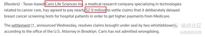 首先,公司高度依赖医保系统与少数付款方,仅最大单一付款方在2025年Q1便贡献了51.2%的收入,收入结构的集中使其对政策变动极为敏感,一旦报销周期延后或标准调整,将直接冲击其现金流。其次,合规风险正在浮现。2022年Caris因违反“服务日期规则”被罚290万美元,近期又收到司法部民事调查函,若监管问题持续发酵,可能动摇其在医保体系中的资格和信誉,进而影响商业稳定性。