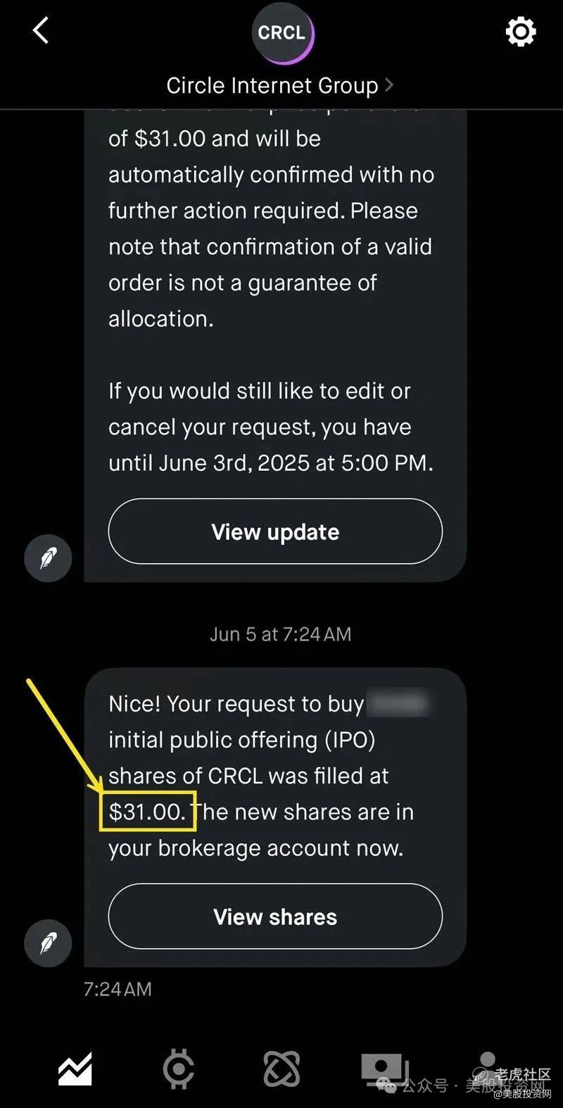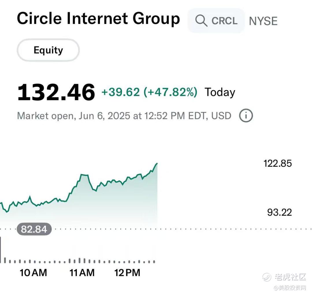 同样在上周6月5日,我们又给大家推介了稳定币第一股 CRCL,IPO发行价仅为31美元。上市首日开盘就高达70美元,第二天更是直接飙升至132美元。短短两天,涨幅超过320%,股价直接翻了超4倍!
