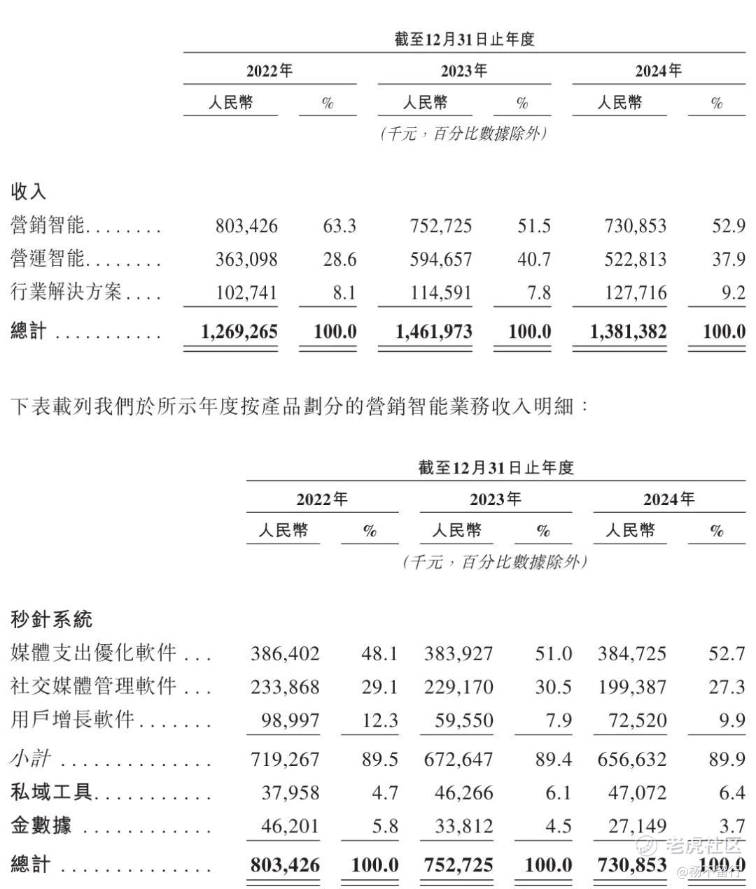 毫无意味,公司成功抓住这一波产业红利,并实现快速增长:年度营收分别在2022年、2023年以21.3%、15.2%的增速扩张至12.69亿、14.62亿,并凭此2023年的总收入成为中国最大的数据智能应用软件供货商(源自弗若斯特沙利文的资料)。