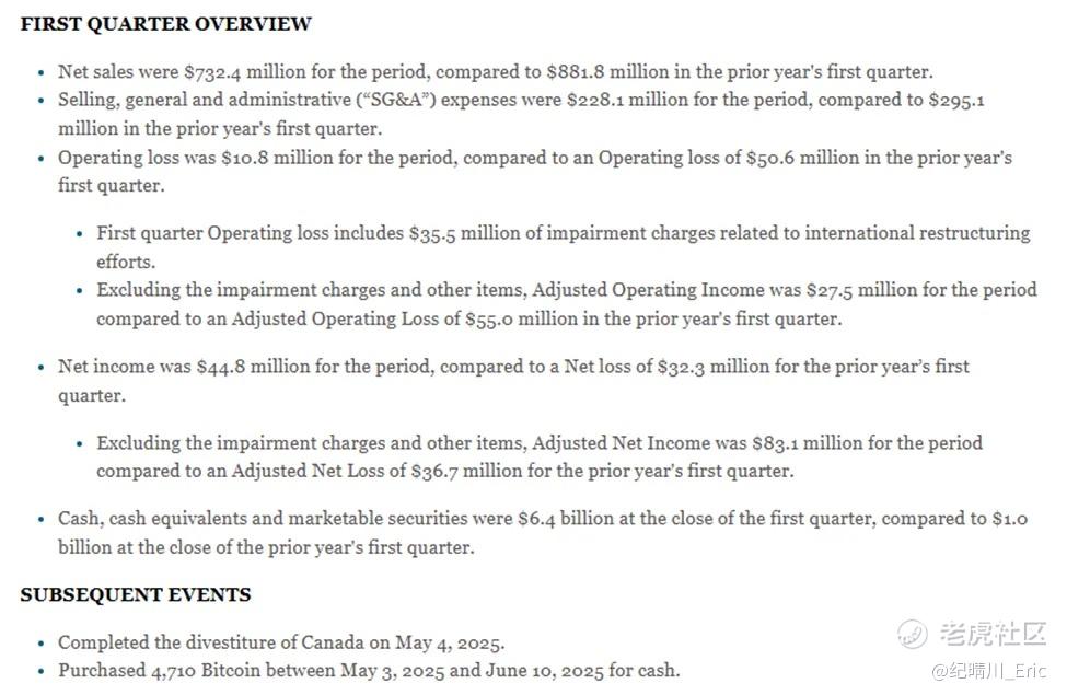 此外,公司已经启动了比特币资产配置,在5月3日至6月10日期间,以现金购买了4710个比特币。