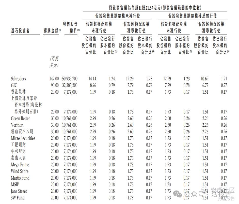 若按中间价21.87港元计,募资总额约78.8亿港元;若触发最高回拨26.5%至公开,则国配部分约占57.92亿港元,其中有17家基石投资者参与,认购总金额达44.09亿港元,约占全球发售股份的55.95%。