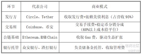 众所周知,如果一个行业存在利好消息,这对它上下游的公司都会产生联动影响,稳定币也不例外,所以在了解它的投资机会前先给大家分享一下稳定币的产业链和商业模式。