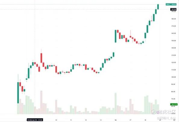 Circle在纽交所直接上市,成为了稳定币领域首家登陆资本市场的企业,也是二级市场想要投资稳定币股票的唯一敞口。公司股价上市首日开盘即达到69美元,较IPO价格的31美元直接翻了一倍以上,目前已经暴涨至199美元,在短短15个交易日内,公司股价较上市开盘价累计上涨约188%,较IPO价格翻了6倍有余,表现极为强劲。