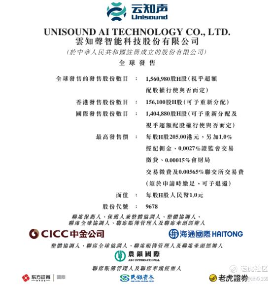 上次港股打新跟大家分享的还是海天味业,最近周六福、圣贝拉那几个公司相信大家在市场上也了解的差不多了,所以这里就给大家分享一个从今天开始招股的新面孔—— $云知声(09678)$ 。