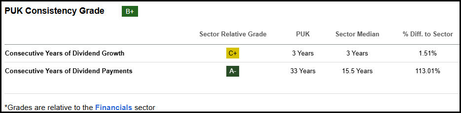 下图:PUK 股票股息一致性等级