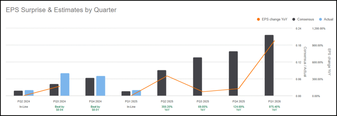 7. Credo Technology(CRDO)Credo是半导体赛道中的后起之秀,专注于为数据中心提供高速互连解决方案。随着AI大模型与云计算需求大爆发,公司产品迅速成为主流标准。2024年Q4收入达到1.7亿美元,同比增长近180%,每股收益0.35美元远超市场预期。公司预计下一季度收入可达1.9亿美元,中点高于市场一致预期的1.62亿美元。其毛利率可达65%,具备强大盈利能力。技术方面,Credo最新推出的3nm 200G光学DSP芯片具备1.6Tbps速度、超低功耗与卓越信号完整性。Meta与Oracle或为其主要客户,有望带来大规模订单,是AI硬件板块中的潜力龙头。