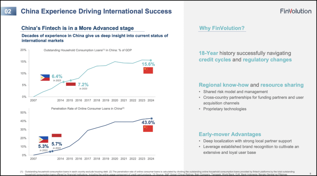 3. 信也科技(FINV)FINV是总部位于上海的消费金融平台,主要通过AI与大数据风控模型提供在线借贷服务。尽管2025年上半年市场对中概股情绪反复,该公司仍展现出强劲反弹力,股价于4月回调后迅速恢复上涨。其最大亮点是海外业务扩张迅速,尤其在印尼与菲律宾市场的渗透率持续提升,2025年一季度国际收入同比增长62%。同时,得益于合作银行资源、资本充足与技术壁垒,FINV的经营现金流同比增长高达255%。估值方面,公司远期市盈率与PEG均显著低于同业,A+的估值评级表明市场低估了其成长性与全球布局潜力,适合看重长期盈利能力的投资者。