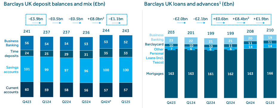 下图:净利息收入指引上调,管理层将 25 财年净利息收入指引从 ~122 亿英镑上调至 125 亿英镑以上