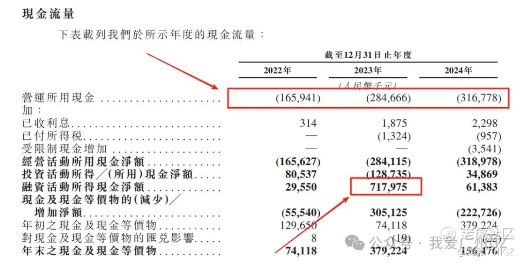 现金流就更可怕了,经营现金流为负,一年比一年负的厉害,1.6亿搞到现在3.1亿,每年失血,全靠融资活下去,好在23年融了一笔7亿的巨款。