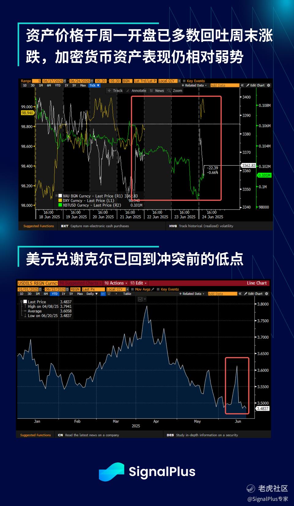 周一早盘的价格表现似乎也印证此观点,美股期货几乎已回升至上周五的水平,油价稳定在每桶约 75 美元,现货黄金回吐了此前涨幅,美元兑以色列新谢克尔也已回落至冲突前低点。