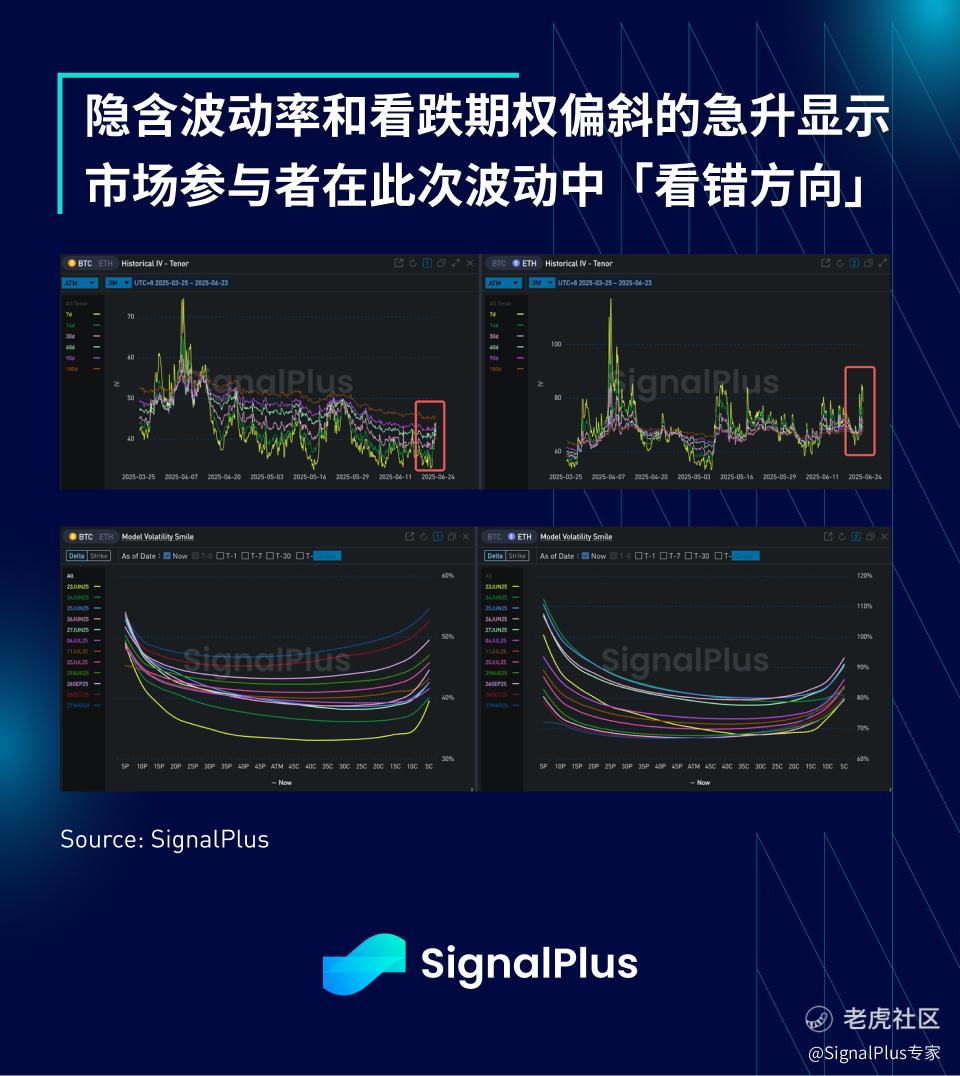 波动率市场方面,价格变化显示交易员对这次波动措手不及,隐含波动率自此前单边下行趋势中突然飙升。看跌期权出现显著买盘,尤其是 ETH,显示市场参与者在持有多头 delta 的情况下寻求下行保护,短期内市场可能还有进一步下行压力。