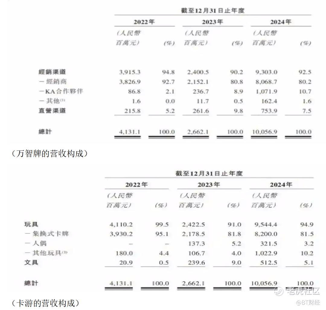 李奇斌的这一步走对了,卡游靠着奥特曼等热门IP,外加产品的青少年社交属性以及抽奖“商业陷阱”,愣是把成本不到5毛一包的卡牌,卖到1.7元起步。2018年到2024年底,卡游基于50多个奥特英雄角色推出了共计320个集换式卡牌系列及42个文具系列,奥特曼IP也成为卡游旗下最赚钱的IP之一。大IP卡片或成为卡游的“营收主力”,2022年营收41.31亿元,2024年就暴涨至100.57亿元,两年就翻了一倍有余。