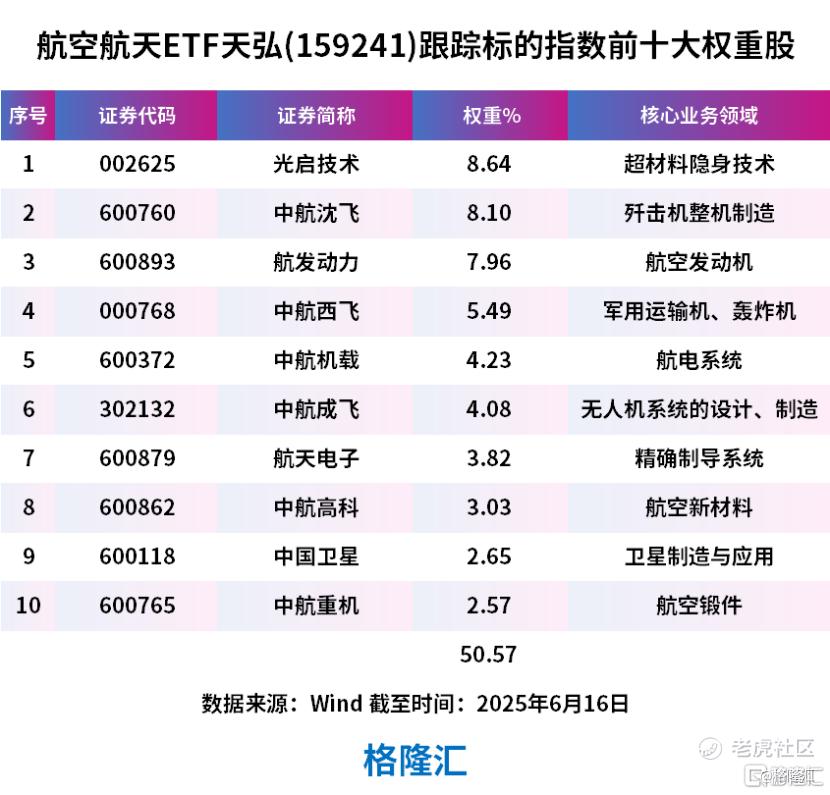 前十大重仓股涵盖了中航成飞、中航沈飞、中航西飞、航发动力等战斗机核心供应商,一键打包歼击机龙头。