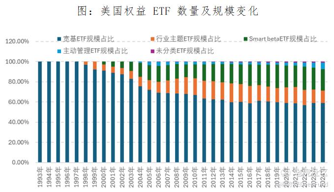 截至2024年末,美国Smart Beta ETF产品数量达到364只,合计管理规模达到17275.10亿美元,十年增长了23倍,占到美国权益ETF规模的20%。