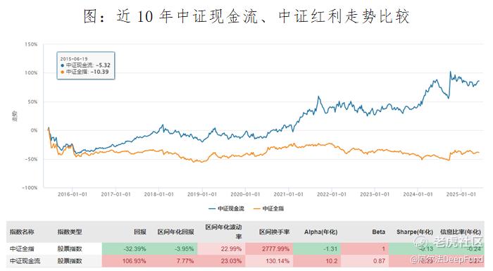 自2015年5月底至2025年5月底,近10年时间,中证自由现金流指数成功穿越市场牛熊,历史年化回报高达7.77%,同期中证全指年化回报为-3.95%。