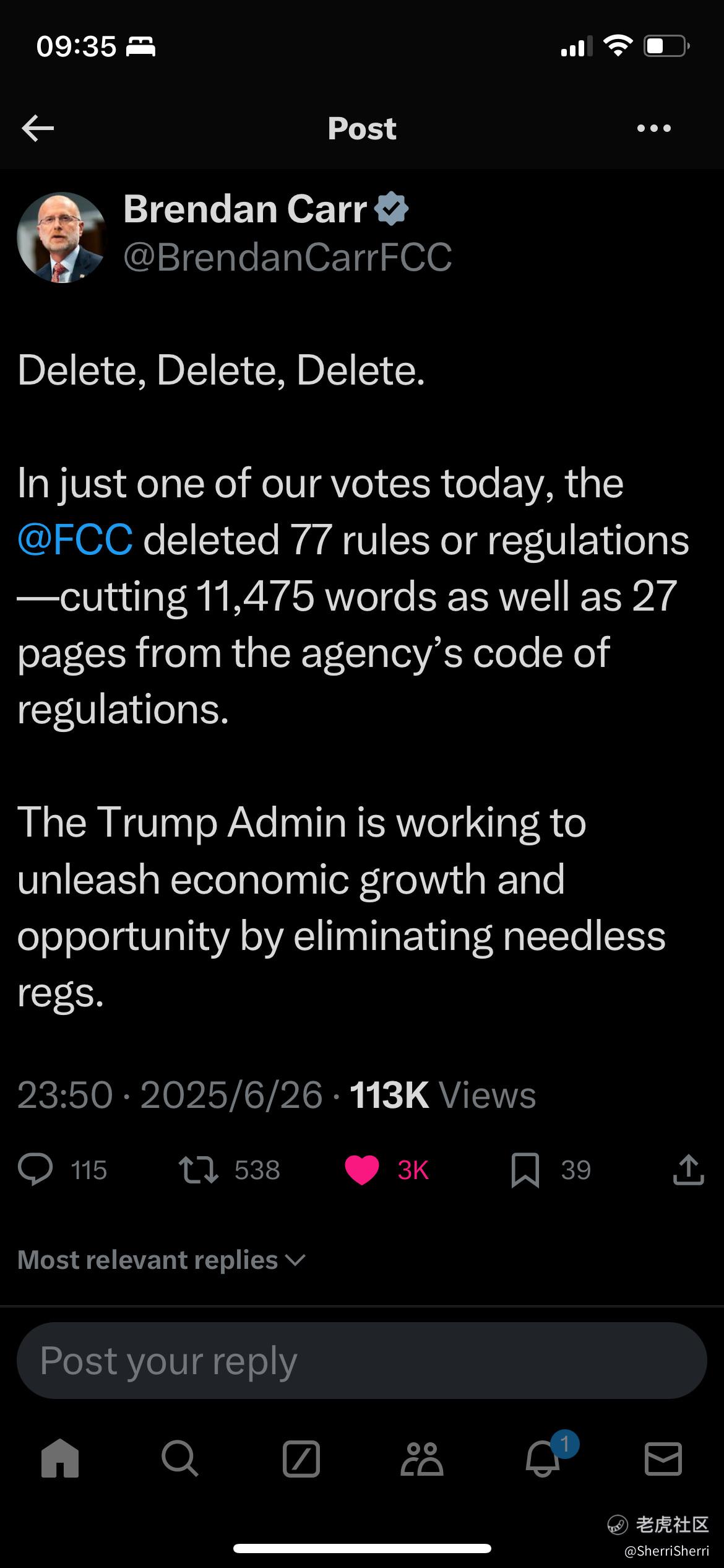 就在我们今天的投票中,美国联邦通信委员会(@FCC)删除了77项规则或规定——从该机构的法规代码中删减了11475个单词以及27页纸。
