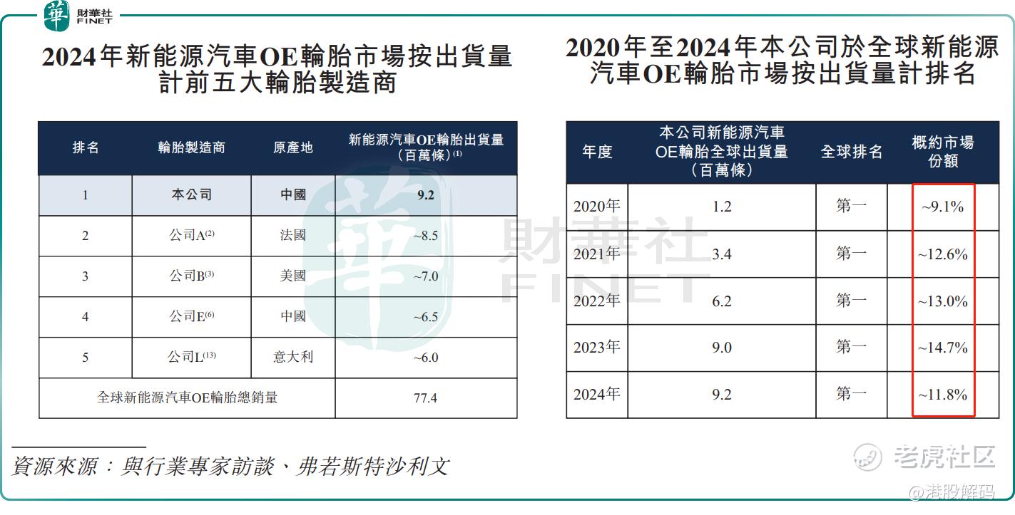 根据弗若斯特沙利文等数据,2023年,玲珑轮胎在全球新能源汽车OE轮胎市场按出货量计的市场份额尚有约14.7%,但到了2024年快速下降至约11.8%。