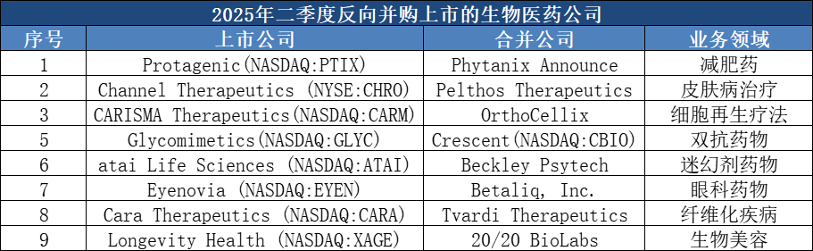 二季度,有9家生物医药公司宣布了反向并购上市,数量是一季度的三倍。