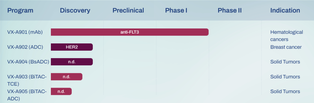 Veraxa拥有独特的双靶向抗体细胞毒性平台(BiTAC),旨在开发具有以前未达到安全特性的突破性抗体疗法,重点布局差异化的新型抗体-药物偶联物(ADC)和双特异性t细胞结合物(TCE)药物。