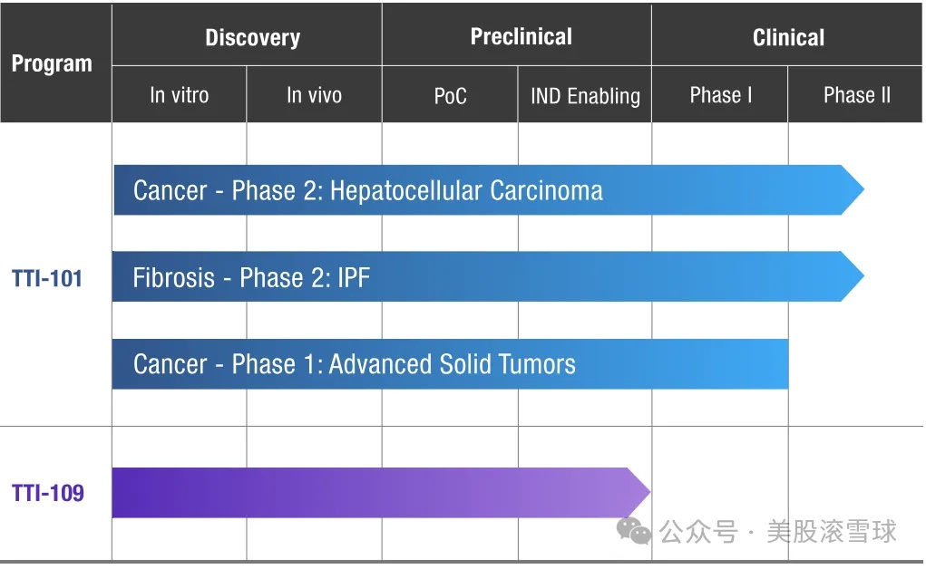 TTI-101已经获得了FDA的快速通道认定,在早期人体试验中已被证明可以缩小肿瘤,目前进入临床二期,领先于拥有同样靶点的Vividion和Kymera。
