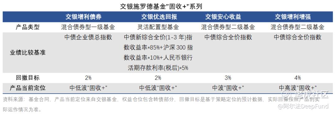 近几年”固收+”基金在低谷中重整,一批真正践行“资产配置、风险控制、科学管理”理念的专业团队借助平台运作模式,真正想投资人之所想、应投资人之所需,打造了一批追求舒适持有体验的”固收+”产品,交银施罗德基金便是其中的一员。