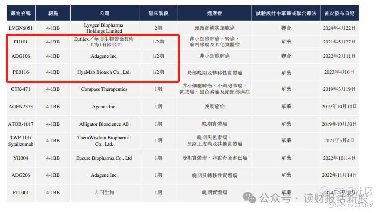 全球PD-L1/4-1BB双抗赛道仅有11款在研药物,其中维立志博的LBL-024是唯一进入注册临床阶段(II期单臂试验) 的药物。主要竞品包括: