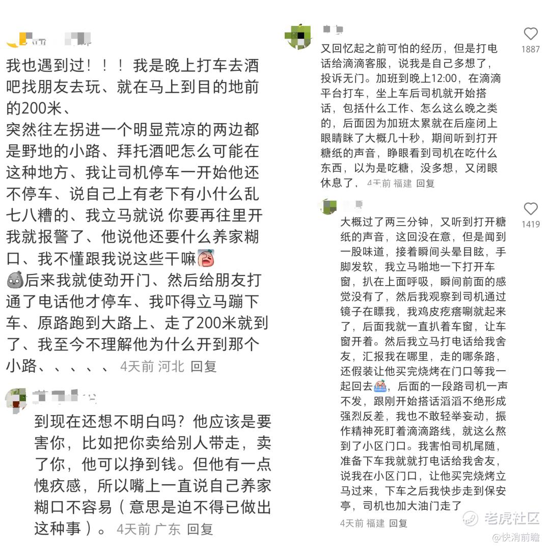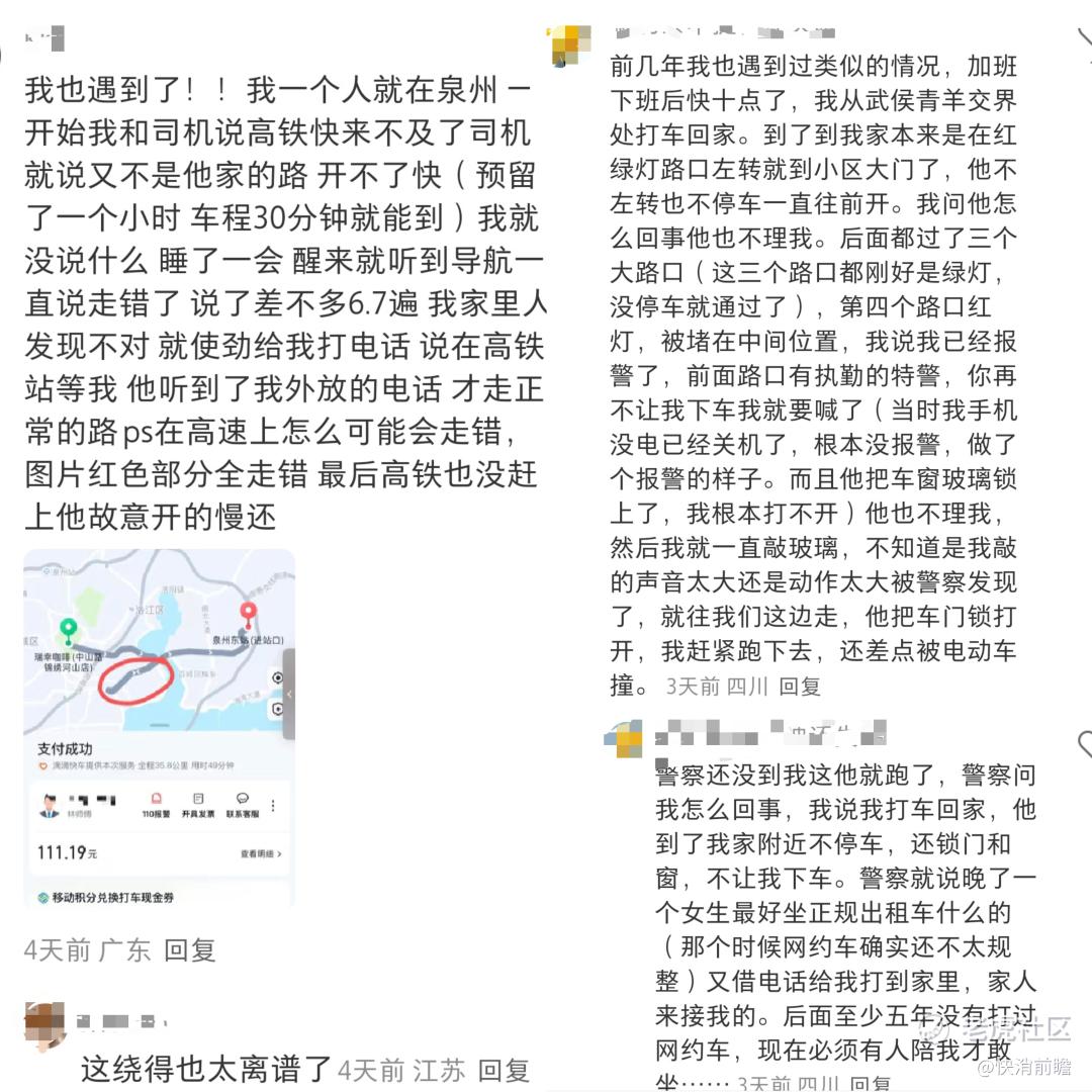 在该博主帖子下,不少网友表示共鸣,并分享了自己类似的经历,不少都是被司机搭话、无故绕路、多次偏航、偏离目的地等情况。