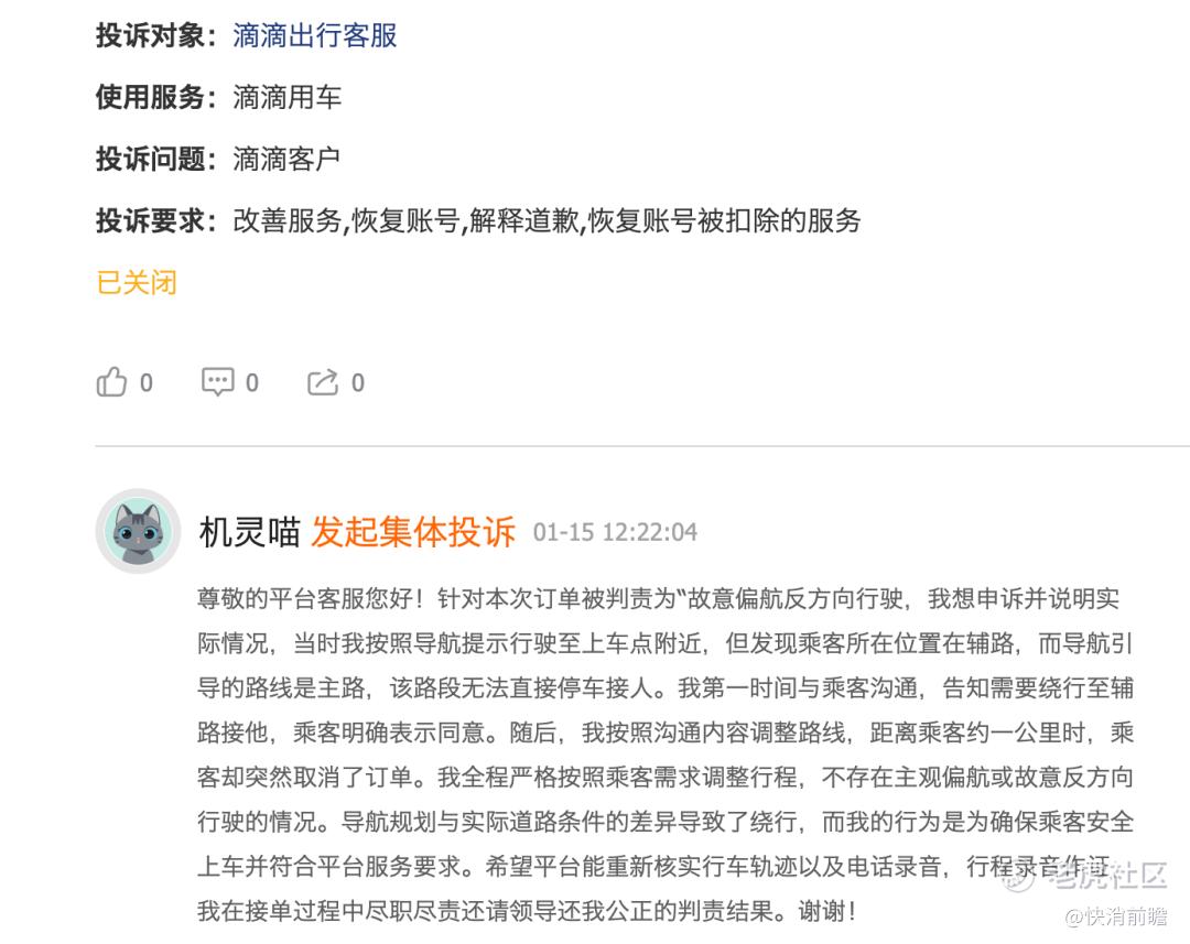 在推进“乘客安全”与“平台高效”的同时,滴滴必须直面司机群体的诉求与权益保障问题,真正建立起公平、透明、双向反馈的服务体系,让每一位履责尽职的司机不再因机制缺陷蒙冤受罚。
