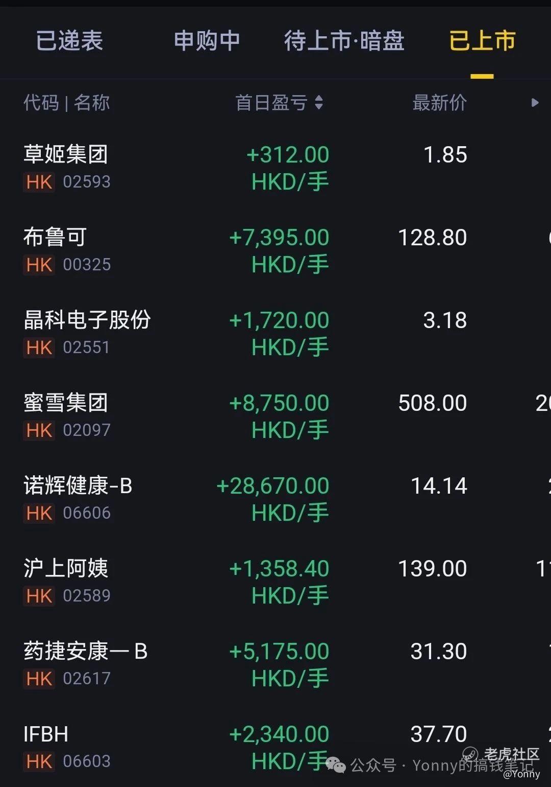 2️⃣最近的创新药行情 + 3000倍公配以上的超火认购热度,注定了99.9%这个票是送钱的,就看运气够不够好了… 历史数据说话(图2),3000倍以上的从来都是赚钱,就是赚多少的问题… 💰生💰果然舒服,只恨钱不够啊,希望以后有机会上个顶头槌。
