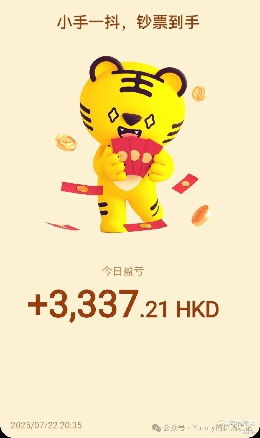 3️⃣ 今日盈亏:老婆的账户小赚3k+,继续创新高,感谢大饼,感谢小米,周末吃喝玩乐的🧧 有!