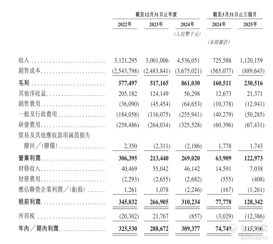 盈利能力稳定:2023-2025年一季度,公司毛利为5.2亿元、8.6亿元和2.3亿元人民币;同期毛利率为17.2%、19.0%和20.6%。相同期间公司净利润为2.9亿元、3.1亿元和1.2亿元,净利率为9.6%、6.8%和10.4%。2025年一季度净利率的提升主要原因是公司营收上升和销售费用下降。