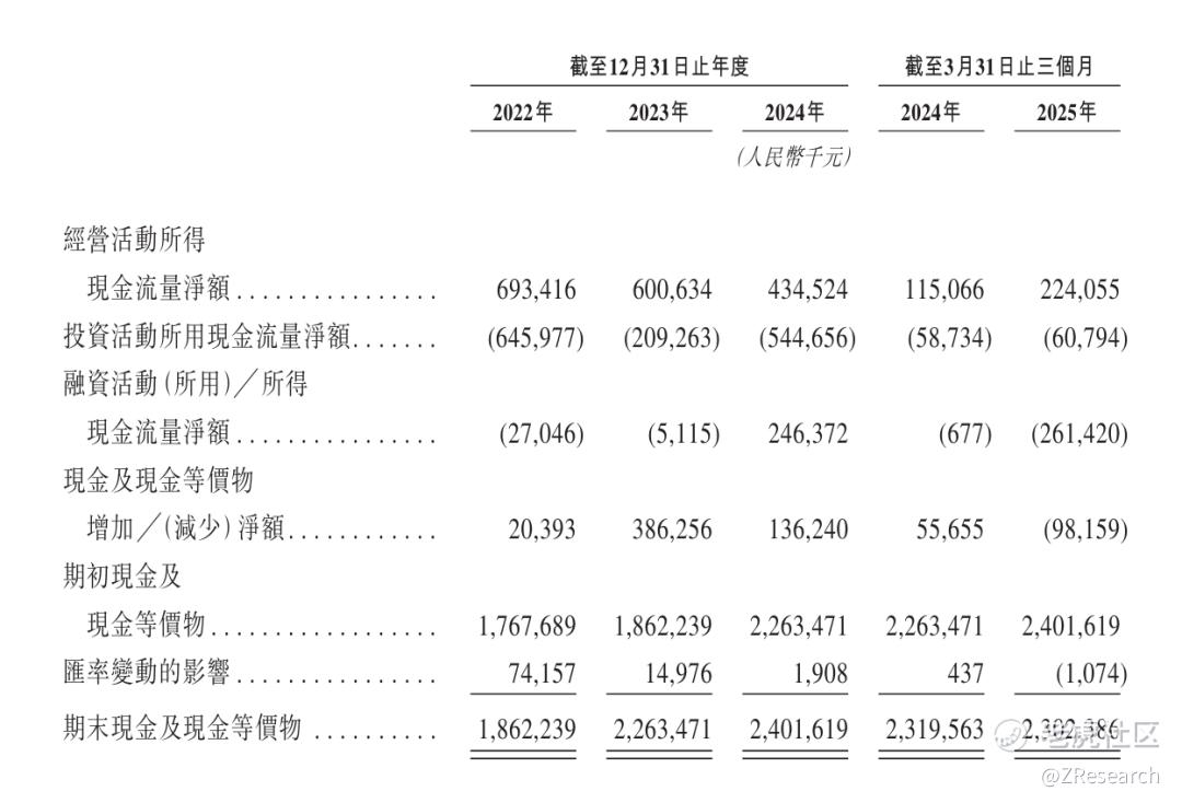 现金流情况:2024年末和2025年一季度经营活动现金流为4.3亿元人民币和2.3亿元人民币,同时2025年一季度公司账户现金及现金等价物剩余23亿元人民币。2025年一季度经营现金流上升的主要原因为净利润的上升;2024年经营现金流下降的原因是非现金及非营业项目的调整和营运资金的变动。