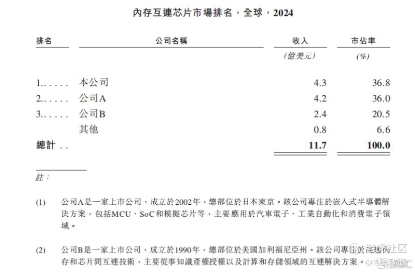 根据弗若斯特沙利文的资料,按收入计算,澜起科技是全球最大的内存互连芯片供应商,2024年占据36.8%的市场份额。行业内其他参与者还包括瑞萨电子、Rambus等。