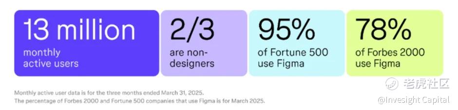 Figma 于 2025 年 7 月 28 日更新招股书,计划发行约 3700 万股普通股,IPO 定价区间为每股 30 至 32 美元,高于此前 25 至 28 美元的预期区间,显示出市场对其成长潜力的积极反应。按发行价上限计算,公司将募资约11.8亿美元,完全摊薄后估值约为188亿美元。